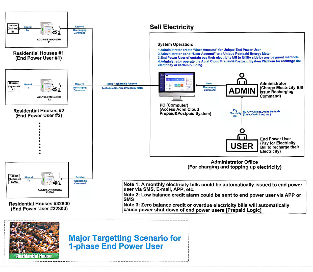 سیستم صورتحساب پیشپرداخت/پسپرداخت Acrel بهطور هدفمند برای خوابگاههای مدرسه، مراکز خرید، پارکهای صنعتی و شهرکهای مسکونی ساخته شده است. معماری سه لایه با کنتورهای هوشمند ADL100-EY (تک فاز) و ADL300-EY (سه فاز) شروع می شود. هر یک از آنها یک رله 100 آمپری ضامن مغناطیسی را ادغام می کند، از DL/T 645 و Modbus-RTU پشتیبانی می کند و کیلووات ساعت را با دقت کلاس 1 ثبت می کند.
