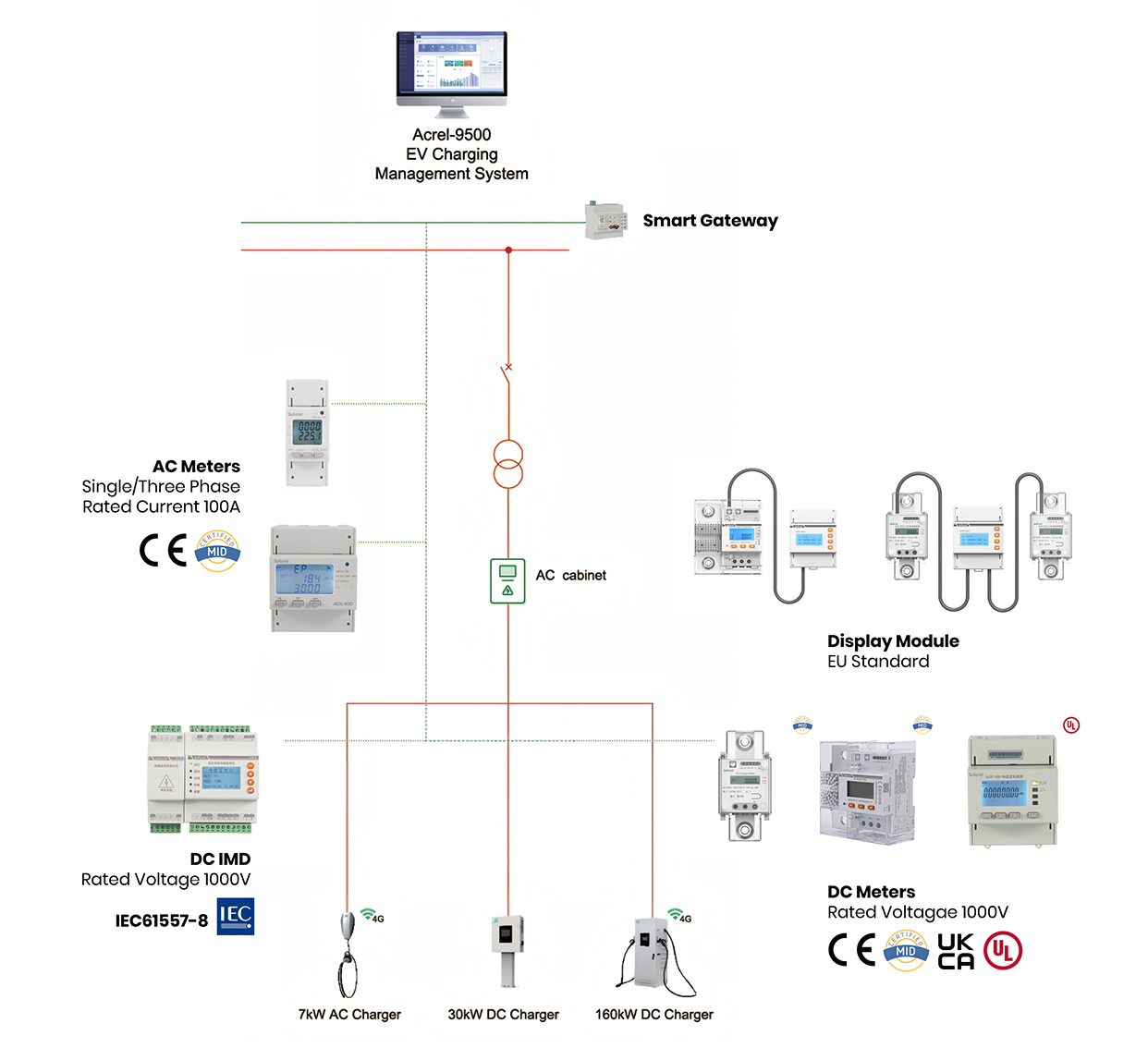 Acrel با ادغام دستگاه های اندازه گیری پیشرفته و رعایت استانداردهای سختگیرانه بین المللی، اندازه گیری قابل اعتماد و دقیق انرژی را تضمین می کند و از پذیرش گسترده و عملکرد کارآمد زیرساخت شارژ EV پشتیبانی می کند.
