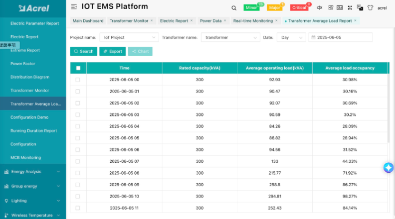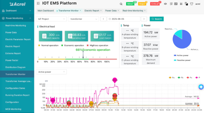 2. تجسم عملیات ترانسفورماتور: این پلت فرم به طور مداوم پارامترهای حیاتی (جریان، ولتاژ، ضریب توان و غیره) را کنترل می کند، اطمینان حاصل می کند که ترانسفورماتورها در محدوده بار ایمن کار می کنند و خطر اضافه بار و آسیب را کاهش می دهند.