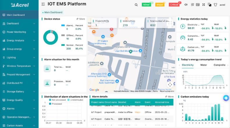 برای فعال کردن عملکرد از راه دور و نظارت هوشمند، Acrel یک راه حل یکپارچه را به کار برد که متر انرژی ADW300-4G را با یک پلت فرم اینترنت اشیا ترکیب می کند و اندازه گیری بلادرنگ، هشدارهای خطا و کنترل متمرکز را ارائه می دهد. کل سرمایه گذاری پروژه تقریباً 200000 دلار آمریکا است